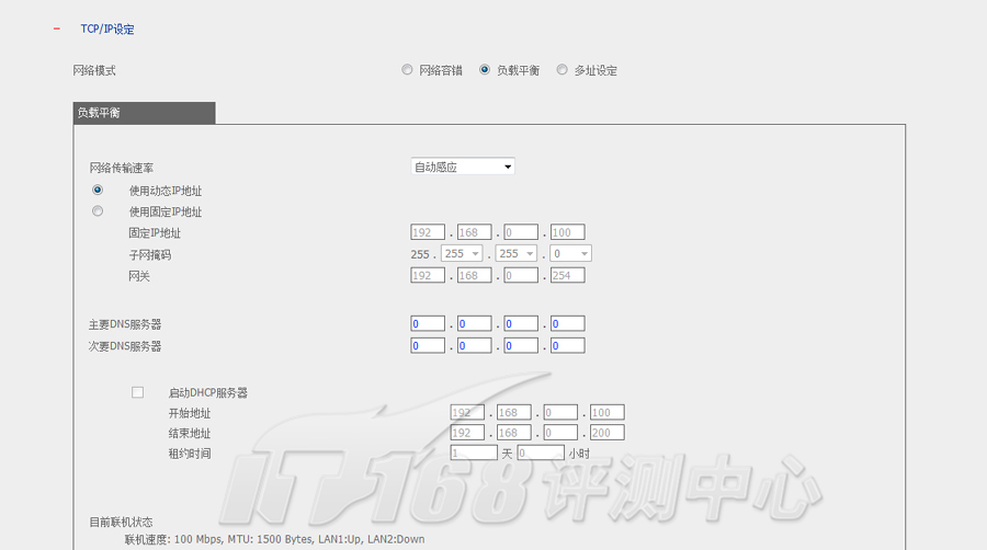 TS-639 Pro提供了两个网卡,我们可以在网络设置的选项中考察网卡的实际性能。这里,我们使用两个网卡组建Teaming,网络模式设置为负载平衡。