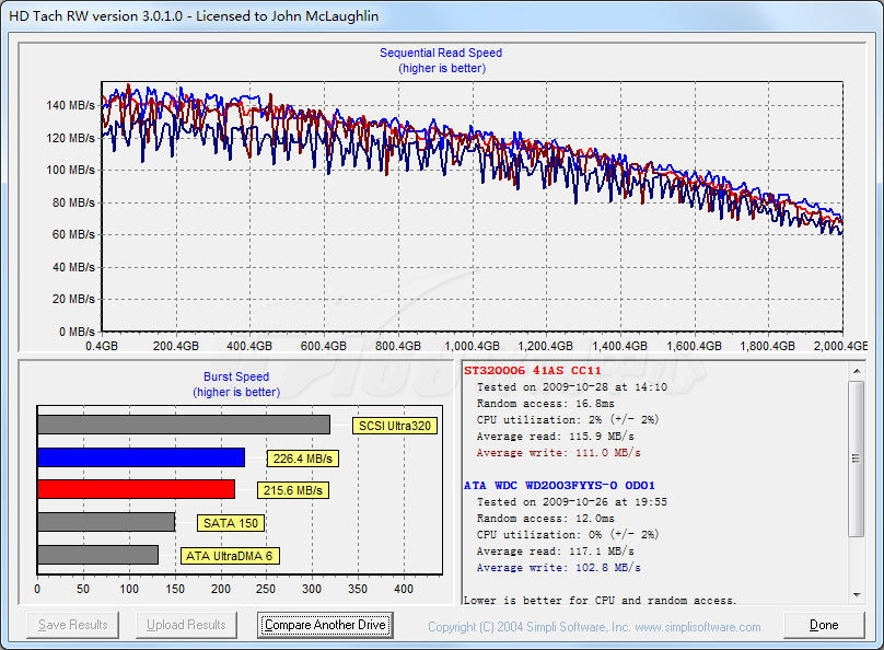 到达磁盘内部传输速率上限后,大家表现都一样。从另一个方面来说,这两个硬盘表现非常接近。