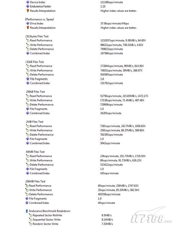 正如你所看到的,对于大文件,使用ACHI有些优势,但不是很明显,对于小文件,无命令队列的IDE模式反倒更有优势,但无论哪种情况,对于一个基于MLC单元的SSD,性能都大大得到了提升,读取速度超过SATA 300连接,写入速度也非常体面,甚至高于英特尔声称的性能规格要求。