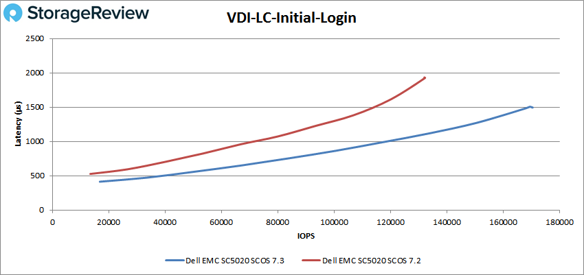 VDI是经典的大规模并发IO场景,在这个测试中StorageReview对虚拟桌面启动、登录、初始化等场景进行了全面的测试,各个场景的负载模型不尽相同,下图是VDI全克隆模式下启动的测试结果。