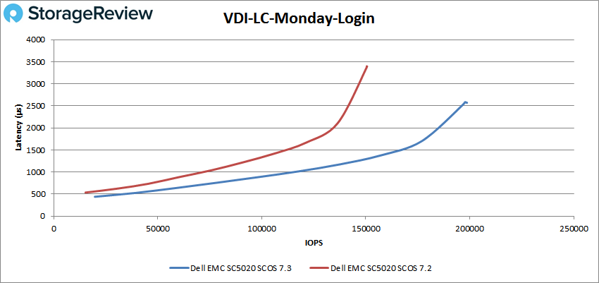接下来的存储设备性能测试、SQL和Oracle以及VDI的测试都会使用VDBench进行测试。通过VDBench,StorageReview将戴尔易安信SC5020的7.2操作系统与最新7.3操作系统进行了比较。