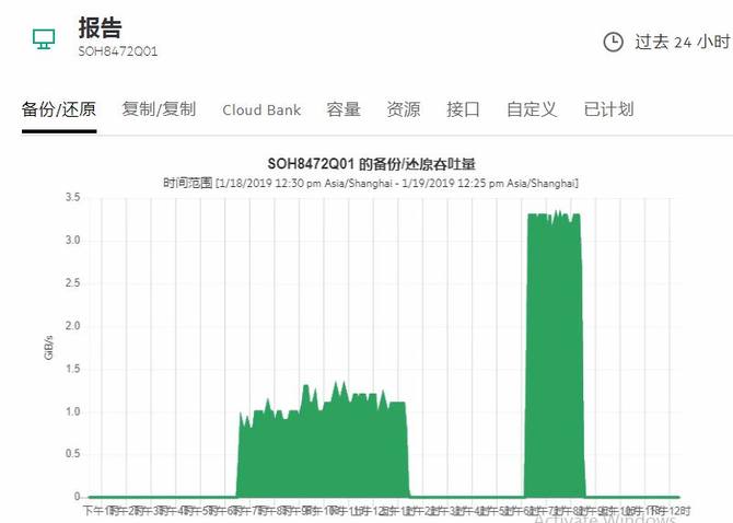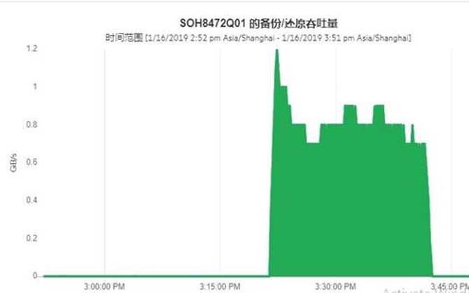 1)首次备份26TB Oracle数据库数据,用时7小时,平均速度1GB/s,极限速度1.2GB/s;