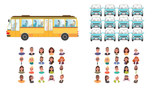左图中,一辆公交车就能完成,而右图要派出几十辆汽车来承担同样的任务。这时,左图代表的就是有效容量,相比右图,它更加高效环保,有利于节约资源。