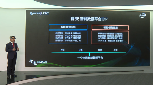 在以“智·变”为主题的2020 NAVIGATE领航者峰会现场,紫光旗下新华三集团发布了AI in All智能战略,旨在使自身的产品和解决方案更具智能,助力客户的业务与运营更智能。作为新华三智能战略的具体实践,新华三此次重点提及的“数字大脑计划2020”,引起了业界广泛关注,其中存储智能化作为这个实践的重要载体,在新华三智能战略的统筹下,重磅推出了智能数据平台(Intelligent Data Platform,简称IDP),此平台将与智能时代的算力与算法深入融合,一方面使设备自身的运行智能化,另一方面为系统提供了多元的AI能力,最终帮助用户提供自动化运维体验的同时实现全局分析和对应用的自动感知。