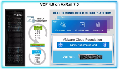 不仅如此,用户还可以在VxRail上部署VCF(VMware Cloud Foundation),简化混合云的部署和运维,并通过增加对容器和Kubernetes支持,有助于用户更快速地采用灵活而安全的云原生应用开发部署,来加速业务创新。