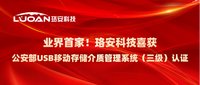 张丽慧 · 2021-08-20 17:12 - 珞安科技喜获公安部USB移动存储介质管理系统(三级)认证